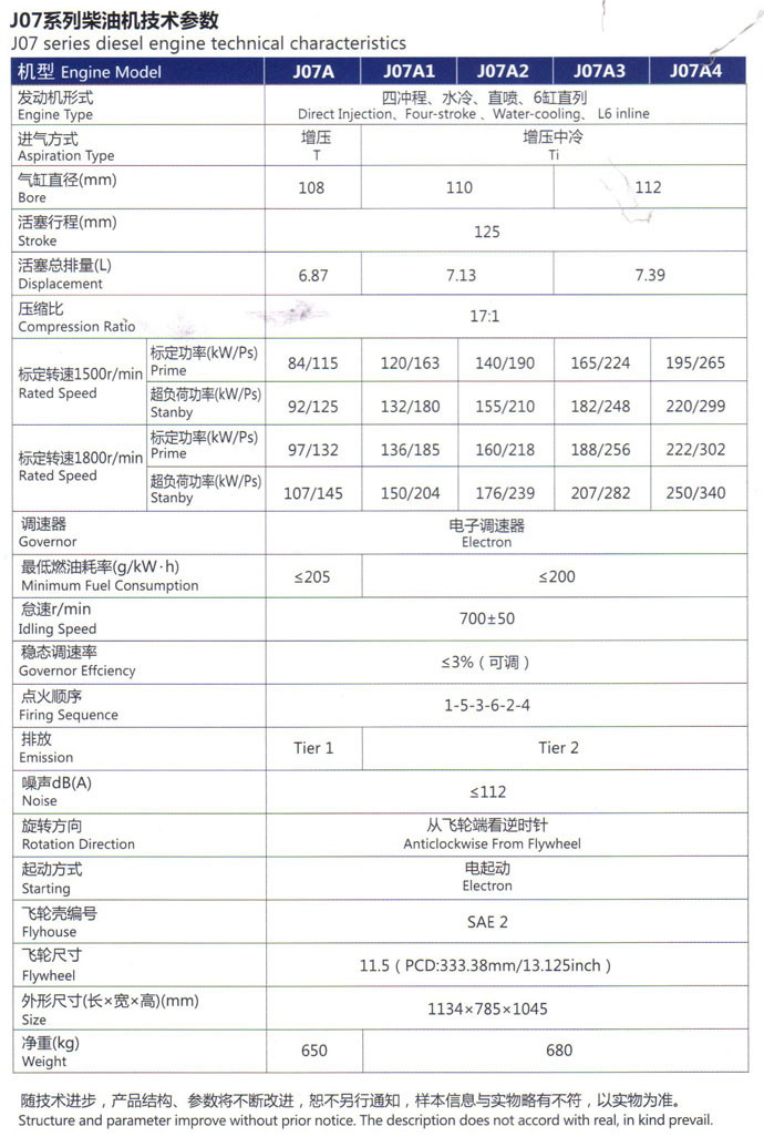 产品名称:J07系列柴油机